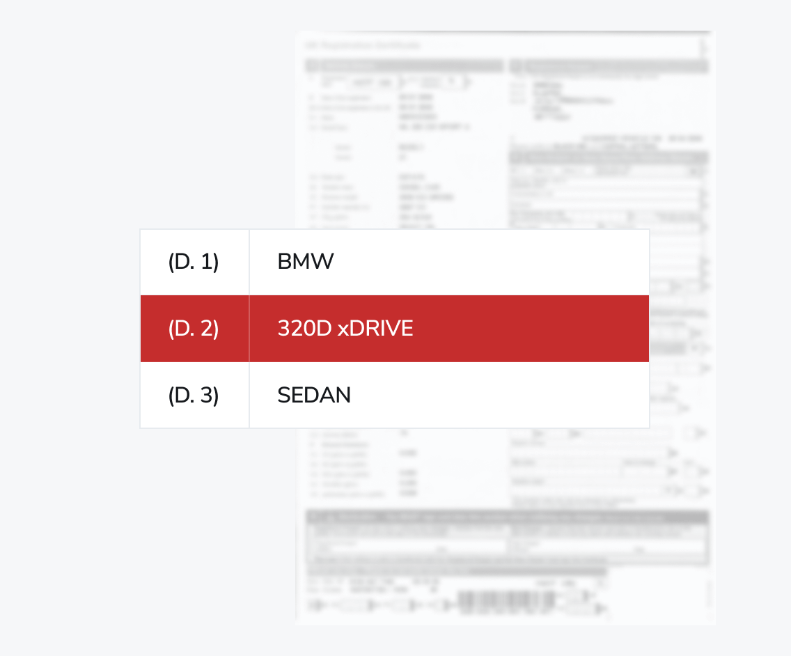 You can find your car model in field D.2 of the registration certificate.