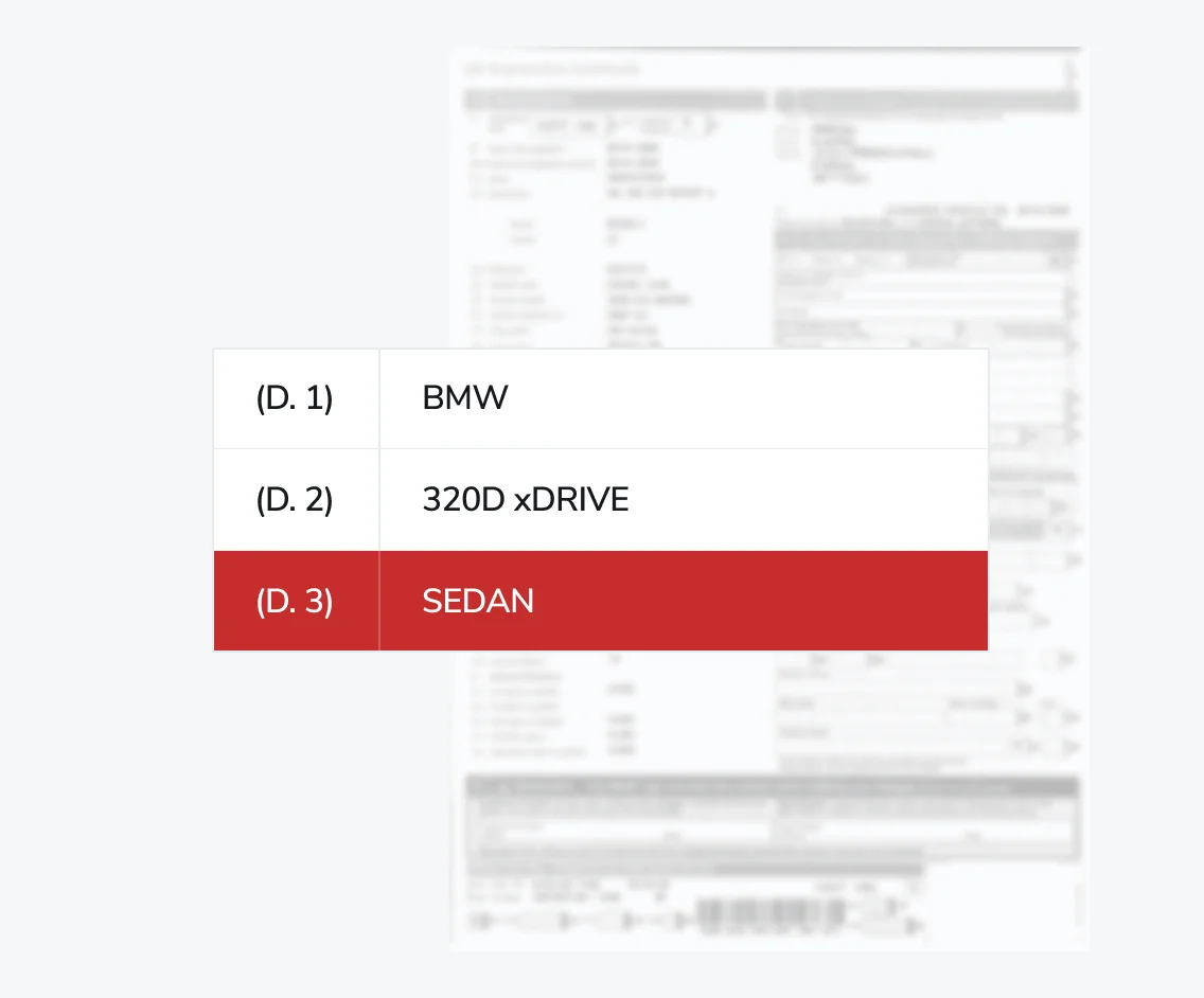 The main information about your vehicle – such as brand, model, production year, and type-approved tyre sizes – can be found in your vehicle registration certificate.